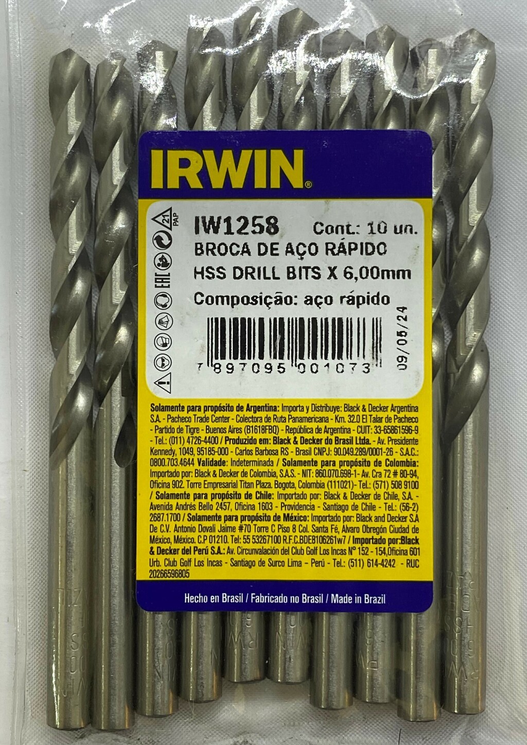 PACOTE BROCAS AÇO RÁPIDO IRWIN 6MM COM 10 PEÇAS
